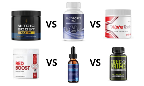 In the market for male energy, vitality, and circulation supplements, there are several options that promise similar benefits. Among the most popular products, we have Nitric Boost, FlowForce Max, Alpha Tonic, Red Boost, Prostadine, and ErecPrime, each with its specific purpose.